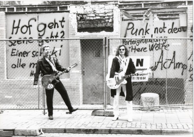 Die (b)Engel Des Herrn 1992 Gehard Michel Klaus Dinger in front of Ratinger Hof Düsseldorf