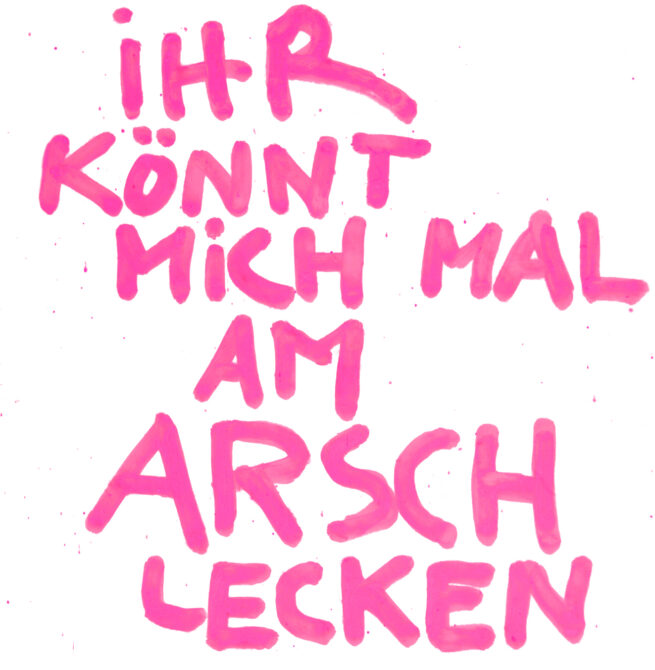 IHR KOENNT MICH MAL ARSCH LECKEN cover for Klaus Dinger Picturebook 2012 from handwritten by Klaus Dinger 1986